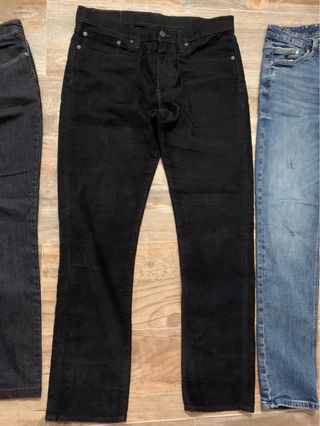 3 pantalones hombre T.44 uno Levi’s pana negro y dos vaqueros todos 30€ - Un pantalón de pana negro Levi’s. - Dos pantalones vaqueros tono negro y azul.