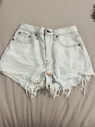 Preciosos shorts Levis talla 27 de mujer, en color azul claro. tienen un estilo desgastado que les da un toque único. - Tienen rotos estratégicamente ubicados. - El bajo está deshilachado, lo que aporta un estilo casual. - Perfectos para el verano.