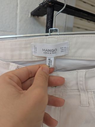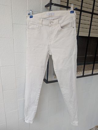 Pantalones ajustados de Mango. - Cremalleras en los laterales bajos de la pernera. -Bolsillos delanteros y traseros En la última foto se ve como en el bolsillo del culo hay una pequeña marca y un pequeño descosido. Es mínimo y no se nota en absoluto.