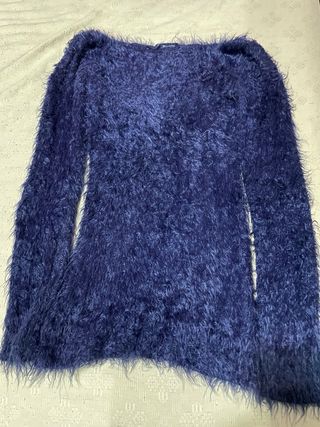 Jersey de tacto suave y diseño peludo. - Manga larga. - Cuello redondo. - Acabado deshilachado en bajo y puños. - Talla: M - jersey muy confortable - Largo ideal para legins y pantalon ceñido
