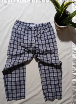 Pantalones largos de pijama con estampado de cuadros. - Cintura elástica. - Diseño a cuadros en tonos azules y grises. - Marca Mango