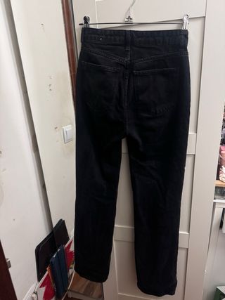 Pantalones vaqueros de corte recto en color negro. - Cintura alta. - Cierre con botón y cremallera. - Bolsillos delanteros y traseros.