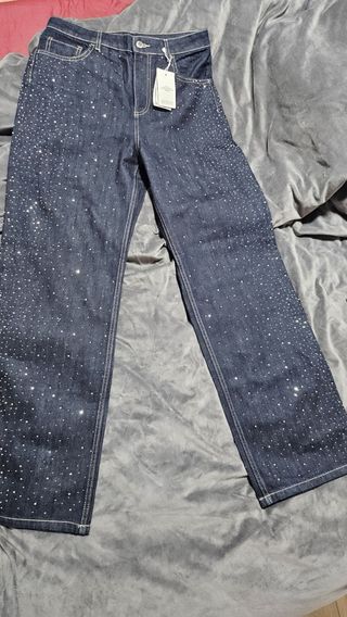 Pantalones vaqueros de Mango con un diseño único. - Decorados con pedrería brillante. - Corte moderno y favorecedor. - Perfectos para un look llamativo.