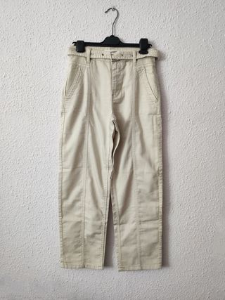 Pantalón de Mango en color beige talla XS - Cintura con trabillas y cinturón. - Bolsillos laterales. - Costuras marcadas en delantero y espalda.