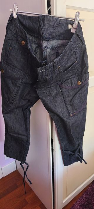 Pantalón vaquero de la marca Mango. - Diseño moderno y cómodo. - Detalle de bolsillos. - Bajo con cordones ajustables.