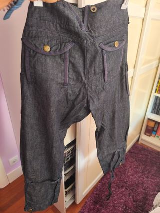 Tiro alto, cierre con botones Abertura con pespuntes en el lateral del bajo Dobladillo deshecho, largo de origen Muy buen estado, poco uso Medidas en las fotos