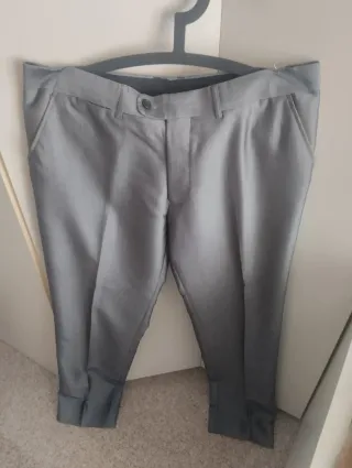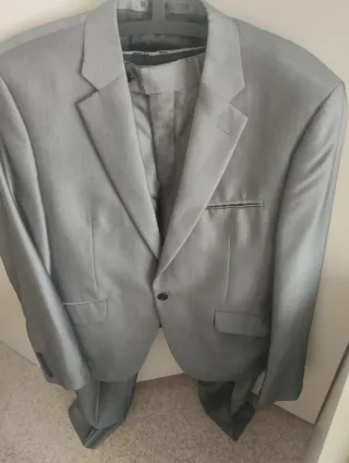 Conjunto de traje de chaqueta y pantalón para hombre.moderno,en los bajos tiene 6 cm,por si lo quieres más largo, largo de pantalón 96 cm, ancho de camal 34cm, cintura 78 cm, largo de manga 63cm, largo de chaqueta 71,cm, sólo tiene dos puestas - Pantalón a juego con trabillas para cinturón. - Cierre de botones en la chaqueta y el pantalón.