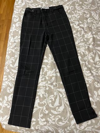 Pantalón cuadros negro con cuadros de Mango, talla 36. Quedan un poco tobilleros.