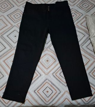 Pantalón de polipiel con un diseño moderno y elegante. - Material: Polipiel. - Color: Negro. - Corte: Holgado con puños. - Cierre: Cremallera y botón.hay fotos de la parte de atrás una pequeña quemada de cigarrillo pero no se nota mucho