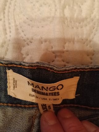 Vaqueros de Mango con un diseño moderno y desgastado. - Corte recto. - Detalle de rotos en las rodillas. - Lavado claro. - Cierre de cremallera y botón.