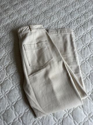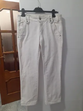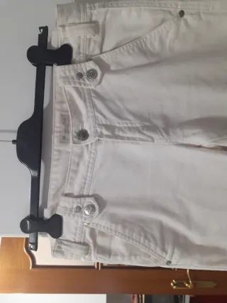 Pantalón de corte recto en color blanco. - En perfecto estado - Cierre con cremallera y botón. - Bolsillos delanteros y traseros. - Detalle de botones decorativos en los bolsillos.
