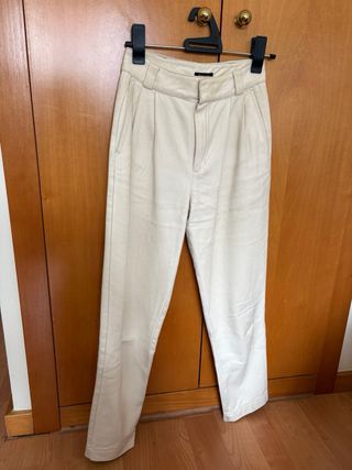 Pantalones de vestir color beige de la marca Massimo Dutti. - Diseño clásico y elegante. - Tejido de algodón. - Bolsillos frontales. - Cierre de botón y cremallera.