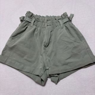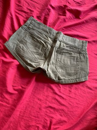 Pantalones cortos de color verde oliva, ideales para el verano. Son de tiro alto y tienen un estilo casual. - Tienen bolsillos laterales. - La cintura es elástica. - Son de tela de algodón resistente. - Se encuentran en buen estado.