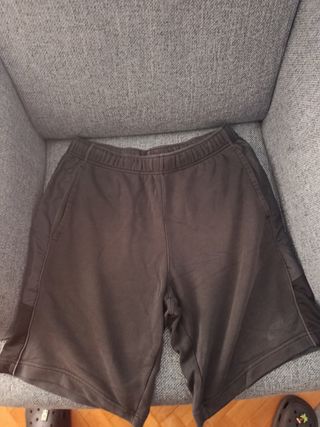 Shorts deportivos Nike de color negro. Son cómodos y están en buen estado. - Logo Nike desgastado. - Son de tejido suave. - Tienen bolsillos laterales. - Perfectos para hacer deporte o para el día a día.