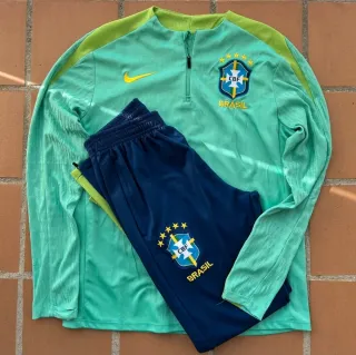 Conjunto deportivo de chándal de la selección de Brasil. - Chaqueta con cremallera. - Pantalón largo. - Diseño con escudo de Brasil y logo de Nike.