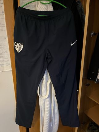 Pantalón deportivo del Málaga CF con el logo de Nike. - Color azul marino. - Escudo del Málaga CF en el lateral. - Logo de Nike en el otro lateral.