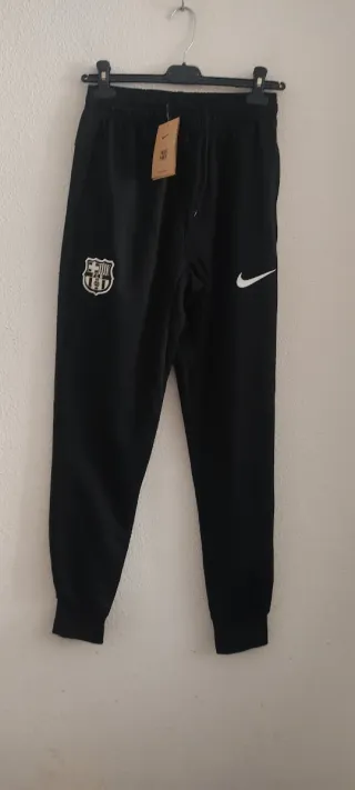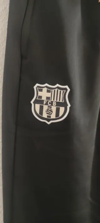 Pantalones deportivos negros con el escudo del FC Barcelona y el logo de Nike. - Diseño moderno y cómodo. - Cintura elástica con cordón ajustable. - Puños en los tobillos.
