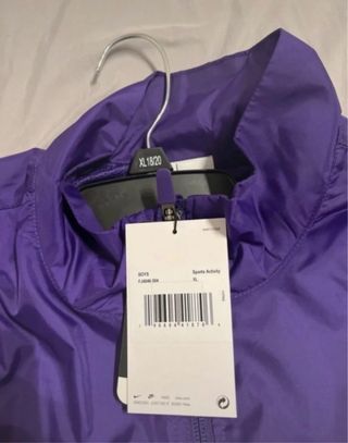 Conjunto de chándal de Los Ángeles Lakers con etiquetas. - Diseño en morado con detalles en amarillo. - Logo de Nike y NBA. - Chaqueta con cremallera frontal y bolsillos. - Pantalón con cintura elástica y detalles laterales.