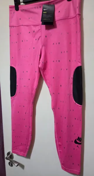 NO REBAJO EL PRECIO. Mallas o leggings de deporte en rosa y negro de Nike Air. Talla L. Nuevas. Medidas: De cintura sin estirar 40cm De cintura estirando 48cm De cadera sin estirar 46cm De cadera estirando 58cm De largo 89cm