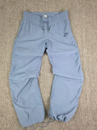 Pantalón deportivo **Nike original estilo jogger / trackpants, en color gris azulado con el clásico logo Nike bordado en la pierna. Diseño cómodo y funcional con cintura elástica y cordón ajustable, ideal para uso diario, deporte o outfits casual y streetwear. Incluye bolsillos laterales y ajuste con cordón en los bajos para regular el fit. Tejido ligero y cómodo perfecto para entretiempo, entrenamiento o estilo urbano. ✔ Logo Nike bordado ✔ Cintura elástica con cordón ✔ Bolsillos laterales ✔ Ajuste en los bajos Prenda en muy buen estado general, lista para usar. 📦 Envío disponible o entrega en mano