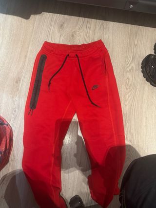 Pantalones deportivos Nike Tech Fleece en color rojo. Son nuevos y están listos para estrenar. - Diseño moderno con cremallera lateral. - Cordones ajustables en la cintura. - Logo de Nike visible. - Una vez usado - Talla S