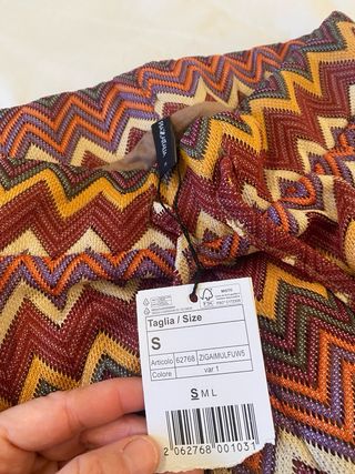 Pantalón ancho con estampado cebra en dos tonos de gris. Corte ancho y fluido. Cintura elástica con trabilla en cada lateral, mide 35 de ancho sin estirar y estirada puede llegar a 60, aunque ya no quedaría bien. De largo son 86 cm, estilo palazzo. Le corté la etiqueta porque molestaba, es un tejido cálido, parecido a lana fina. Yo creo que es una talla 44. Poco uso.