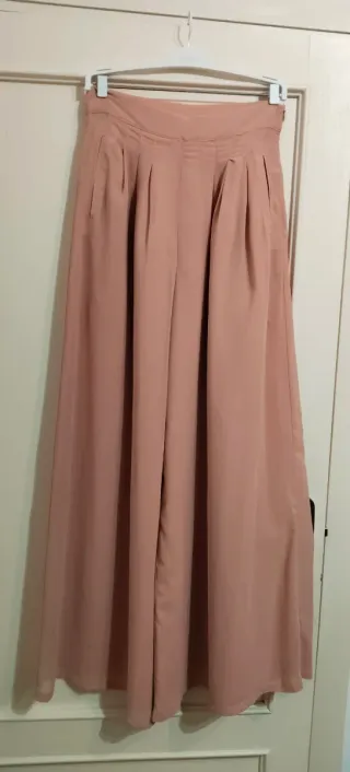 Elegante pantalón palazzo de color rosa. Ideal para cualquier ocasión. - Corte amplio y fluido. - Cintura alta. - Tejido ligero. Ideal para graduaciones