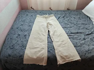 Pantalones palazzo de Zara en color blanco. Vendo jeans talla 36 en perfecto estado, puestos 2 veces porque me quedan pequeños. #zara - Corte ancho y moderno. - Tiro alto para mayor comodidad. - Detalle de nervio frontal.