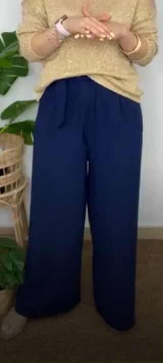 Pantalón talla única azul Palazzo. Muy comodos pero me quedan grandes. No necesita plancha, disponible también en negro