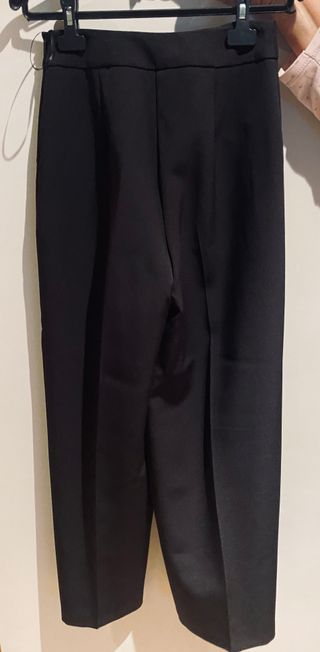 Elegante pantalón palazzo de Zara Woman. Es de color negro y talla S (equivalente a 36 o 8). - Quedan por arriba del tobillo. - Diseño amplio y fluido. - Ccremallera invisible. - Tejido suave y fresco.