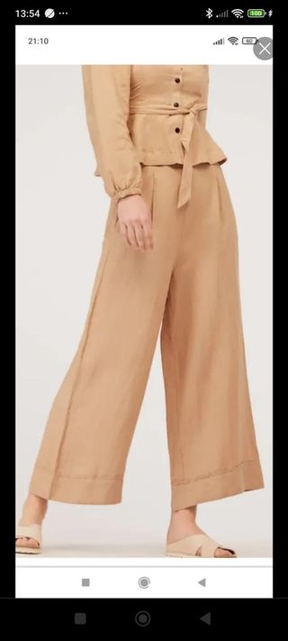 Pantalones palazzo de lino de Oysho, en color beige y talla S/36/8. Son de tiro alto y tienen un corte amplio y fluido. Ideales para un look cómodo y elegante. - Corte palazzo - Tiro alto - Tejido de lino