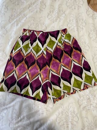 Falda pantalón de corte moderno con dos bolsillos laterales . Cintura 36 Largo 40 Lleva goma en la cintura - Diseño cruzado. - Detalle de hebilla dorada. - Tejido con caída.