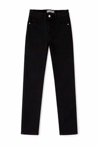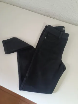 Pantalones vaqueros de color negro. - Corte ajustado. - Cierre de botón y cremallera. - Bolsillos delanteros y traseros.