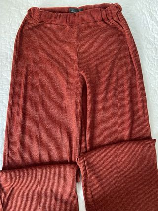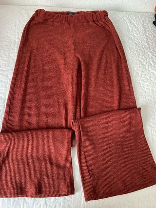Pantalón de punto con un diseño ancho y cómodo. - Tejido de punto acanalado. - Cintura elástica para un ajuste cómodo. - Piernas anchas y fluidas.