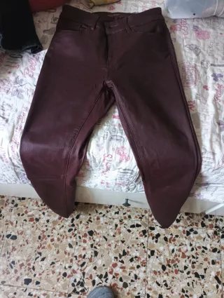 Pantalones de efecto piel en color negro. Son cómodos y versátiles. - Tejido elástico. - Cintura alta. 1€ cada prenda