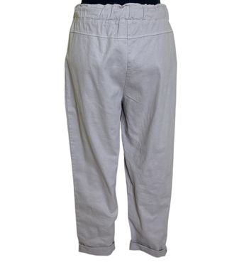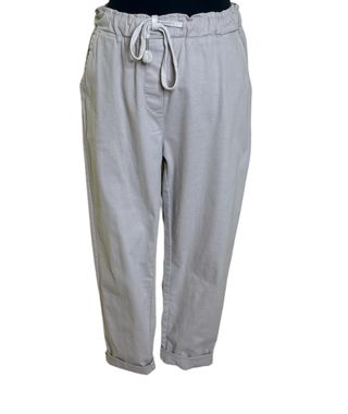 Pantalón casual de mujer beige. Con bolsillos. Puños remangados. Cintura elástica y fruncida con cordón 97% de algodón Tallaje M, XL