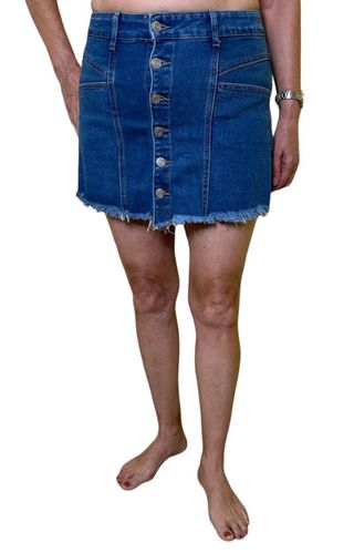 Falda vaquera por dentro es tipo pantalón con botonadura en la zona delantera. Tallaje XS=34 S=36 M=38 L=40 XL= 42 La modelo tiene talla 42
