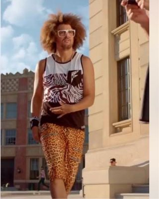 Pantalones con un llamativo estampado de cebra en amarillo y negro. - Diseño de cebra. - Cremalleras en los bolsillos traseros. - Logo Party Rock bordado.