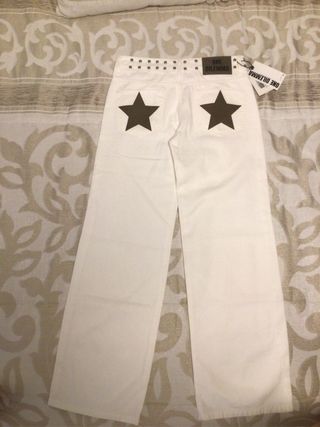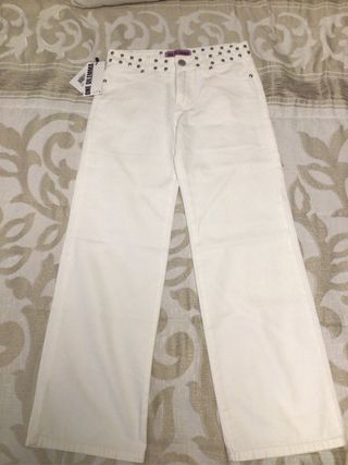 Pantalones vaqueros de la marca ONE DILEMMA, nuevos a estrenar. - Diseño con tachuelas en la cintura. - Corte recto. - Cierre de cremallera y botón.