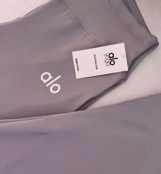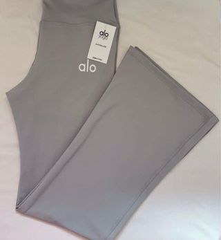 Leggings de la marca Alo Yoga en color gris. Diseño cómodo y moderno. - Tejido suave y elástico. - Cintura alta. - Corte acampanado.