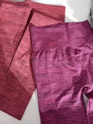 Pack de 2 leggings de mujer con un diseño jaspeado en tonos rosas y morados. La cintura es alta y elástica para un ajuste cómodo. - Tejido elástico y suave. - Cintura alta. - Diseño jaspeado.