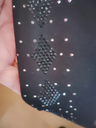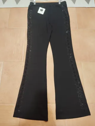 Pantalón de vestir negro con detalles brillantes a los lados. - Corte acampanado. - Adornos de pedrería.