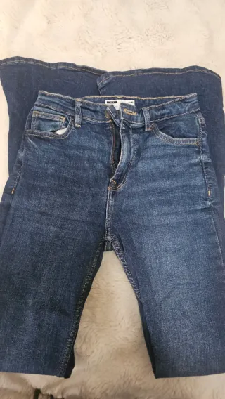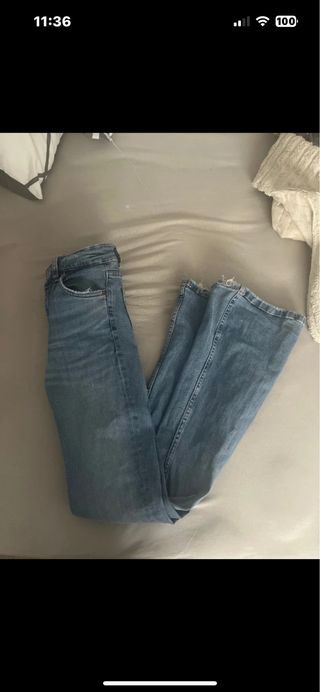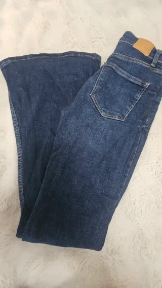 Pantalón vaquero de campana de Zara. Un clásico que nunca pasa de moda. - Corte acampanado. - Piernas ligeramente desgastadas en el bajo. - Talla 34 - Muy buen estado