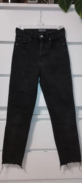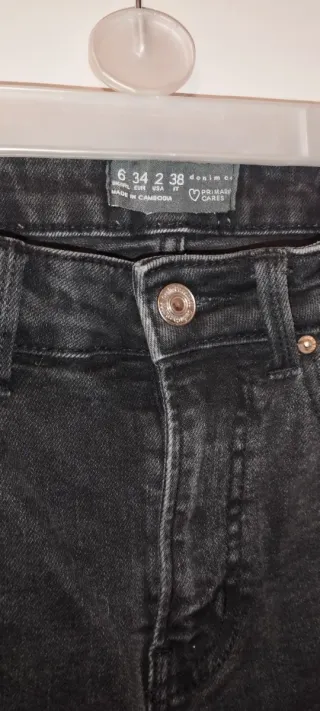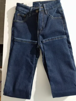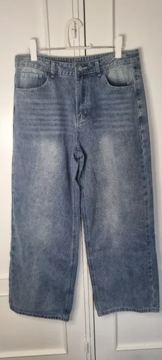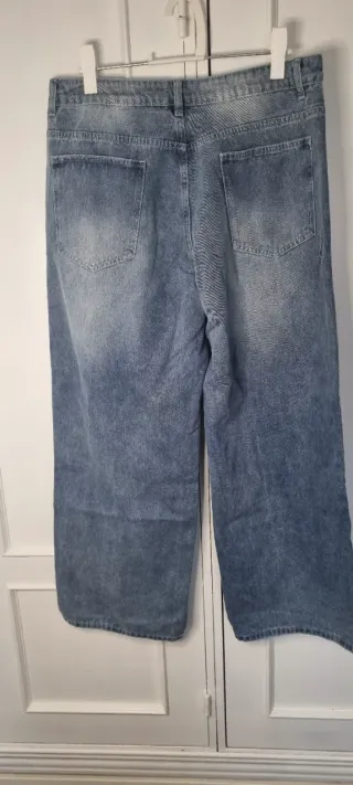 Pantalón vaquero de corte ancho y estilo clásico. - Diseño con bolsillos delanteros. - Cintura alta. Sin usar, le lave para ver si encogia pero no me queda grande.