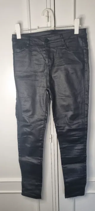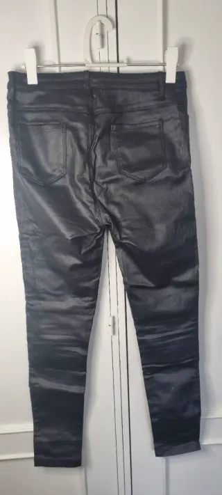 Pantalón pitillo con un moderno efecto cuero. - Corte ajustado. - Diseño liso.