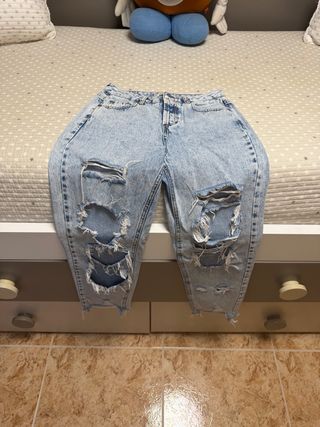 Pantalones vaqueros de Pull&Bear con un diseño moderno y desgastado. - Estilo mom fit. - Lavado ácido. - Aberturas en las rodillas y bajo deshilachado.