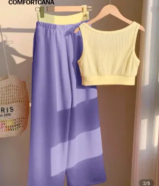 Conjunto Shein Top y Pantalón Morado/Amarillo