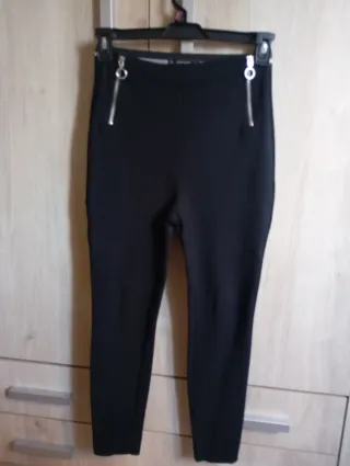 Pantalón tipo leggins de Zara Basic en color negro. Tienen un diseño ajustado y moderno. - Cremalleras decorativas en los bolsillos delanteros. - Cintura elástica para mayor comodidad.