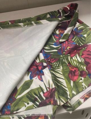 Pantalón con un vibrante estampado de flores tropicales y hojas verdes. - Diseño de corte moderno. - Tejido ligero y cómodo. - Detalle de anillas en la cintura.