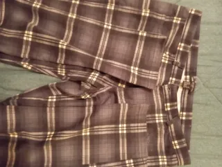 Pantalones cómodos y suaves con un diseño de cuadros clásico. - Tejido de poliéster y rayón. No se arrugan - Detalle de volantes en los bajos. - Corte capri.
